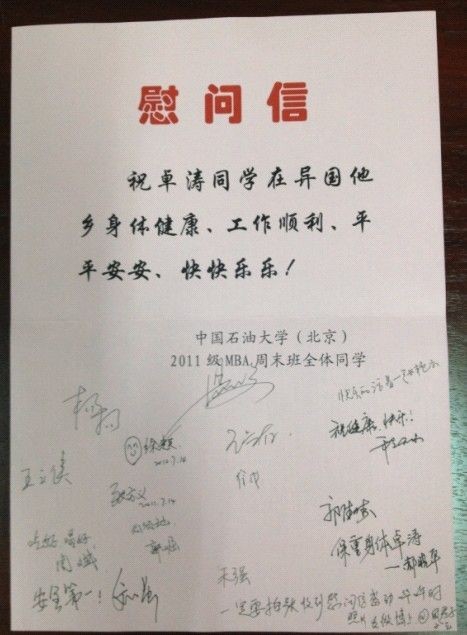 2011级全体学员致函慰问在伊拉克工作同学