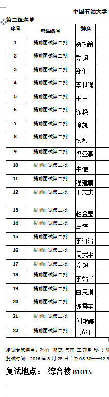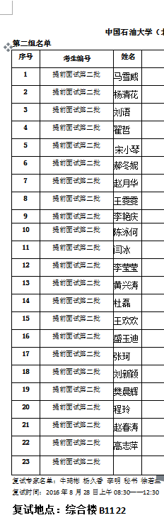 2.考生根据分组顺序至各组教室,组长宣布面试开始→专家组老师提问→考生回答→考生抽题→秘书记录→考生在复试情况记录表背面中签名→离开。