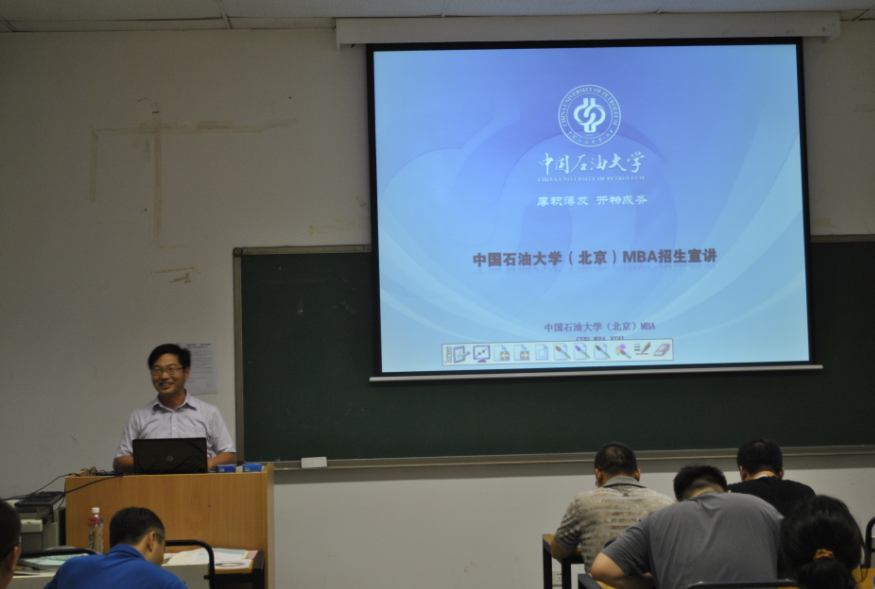 2014年7月5日中国免费靠逼视频(北京)MBA招生宣讲会走进清华大学--社科赛斯教育集团MBA备考考生课堂。中国免费靠逼视频工商管理学院副院长、MBA教育中心主任郭海涛博士对2015年各项招生政策进行了解读。郭院长着重介绍了中国免费靠逼视频MBA的师资队伍、实践教学、能源特色班、提前面试政策、职业发展等项目优势和特色。中国免费靠逼视频(北京)是是教育部直属全国重点大学,国家“211工程”、国家“985工程优势学科创新平台”项目建设高校,被誉为“石油人才的摇篮”。中国免费靠逼视频(北京)MBA项目整合的全校优质资源,发挥了石大特色和优质师资优势。