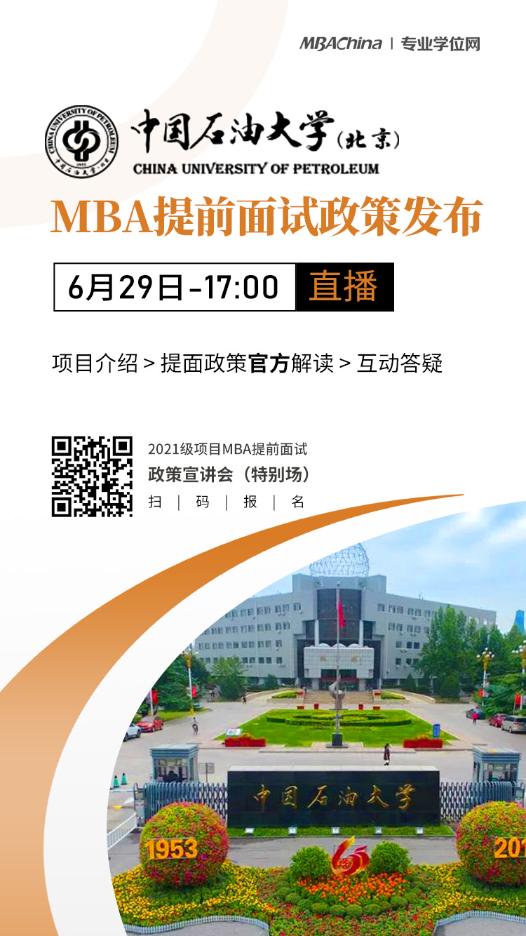为帮助2021级考生深度了解高校MBA提前面试的官方政策及提面在考MBA过程中的重要性,MBAChina联合北京各大高校商学院联合推出“2021级MBA项目提前面试政策宣讲会(特别场)”活动。为2021考生们官方解读2021级MBA项目提前面试政策。中国免费靠逼视频(北京)MBA项目应邀参加此次2021级MBA项目提前面试政策宣讲会活动。
