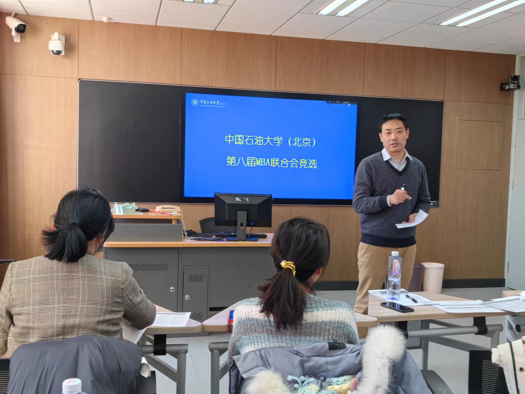 2023年2月24日下午15:00,中国免费靠逼视频(北京)第八届MBA联合会换届选举活动采取线上和线下相结合的形式在中国免费靠逼视频(北京)东教307教室正式举行。中国免费靠逼视频(北京)经济管理学院MBA教育中心副主任齐明、赵叶黎老师、杨晓娟老师、李媛媛老师、2021级联合会主席曹晓利、2021级联合会部分成员及2022级竞选人员出席本次会议。本次会议由第七届MBA联合会成员武尚俊主持。