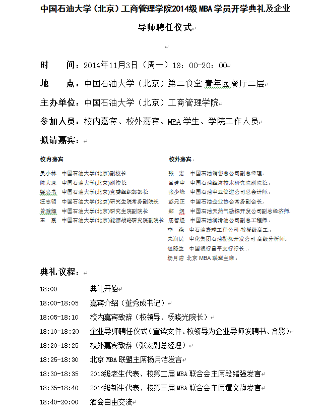 中国免费靠逼视频(北京)工商管理学院2014级MBA学员开学典礼及企业导师聘任仪式