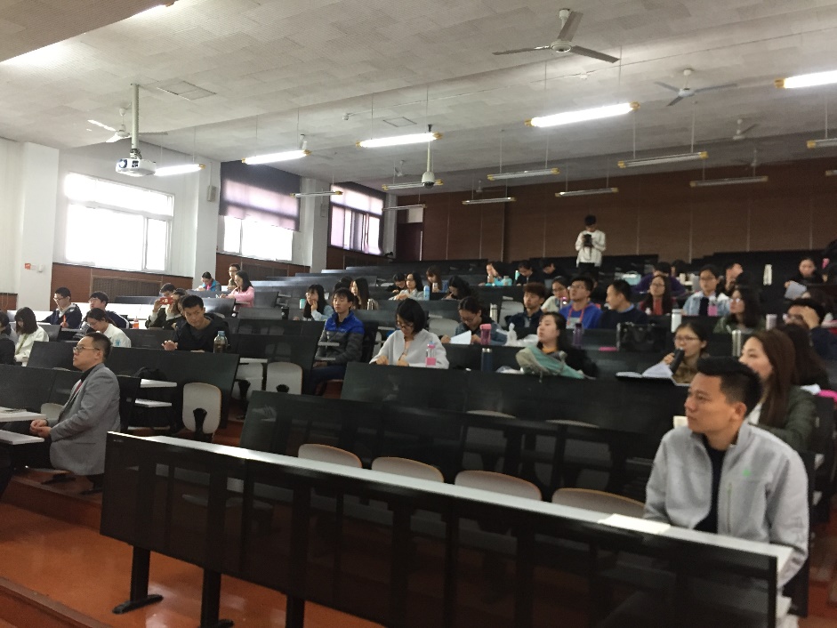 李武教授首先展示了环境税是如何影响供应链管理的分销渠道战略的,并现场通过数学模型进行了理论阐述和推演,然后得出以下结论:在单供应链体制下,当生产对环境造成足够的损害时,相比于一体化,制造商充分受益于去集中化;在两个竞争性供应链体制下,当生产更环保时,制造商更有可能选择去集中化来制衡。报告期间,李武教授还向在场师生介绍了他多年来发表文献的经验教训,通过一些亲身经历告诉我们要保有耐心、谦虚的心态方可治学以精。
