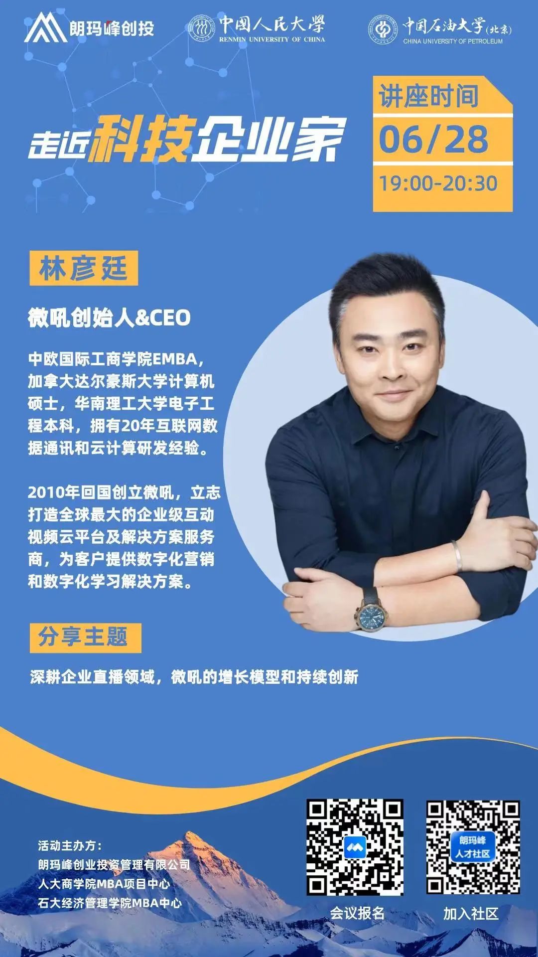 “石大创客谈”讲座预告(第三期)|走近科技企业家—微吼·林彦廷